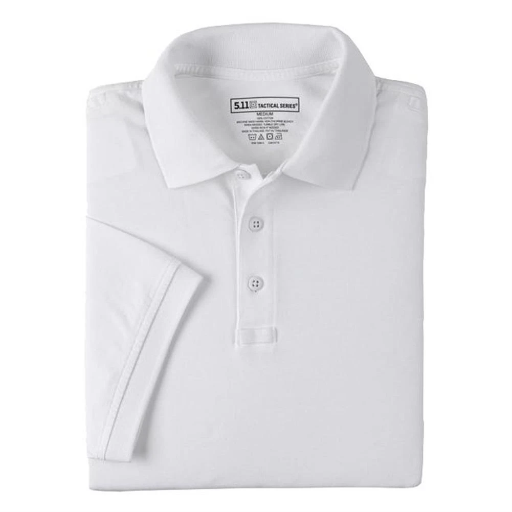 For casual on- or off-duty wear, the 5.11 Tactical Polo is sewn with law enforcement officers, security personnel and other tactical professionals in mind. This polo is designed to deliver a neat, professional look and high-performance functionality. It features mic-loop pockets on each shoulder and at the bottom of the placket, reinforced dual pen pockets and resilient melamine buttons. The No Roll Collar with collar stays provide a neat, clean appearance all day long. Made from 6 oz. 100% cotton jersey fabric, these shirts accept most embroidery and silk screening methods for total customization with your unit or department.